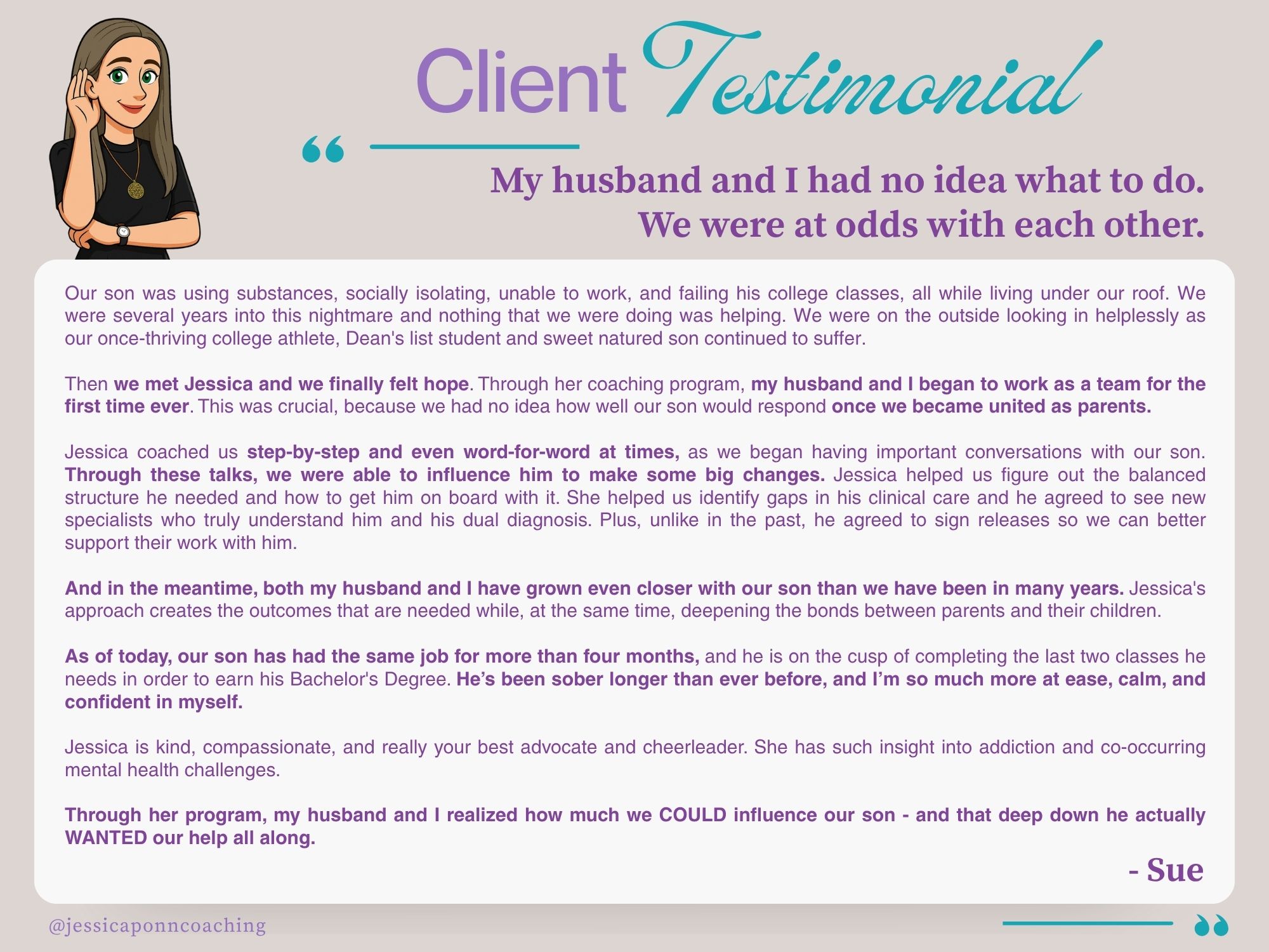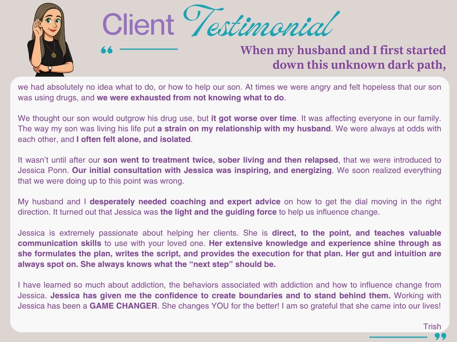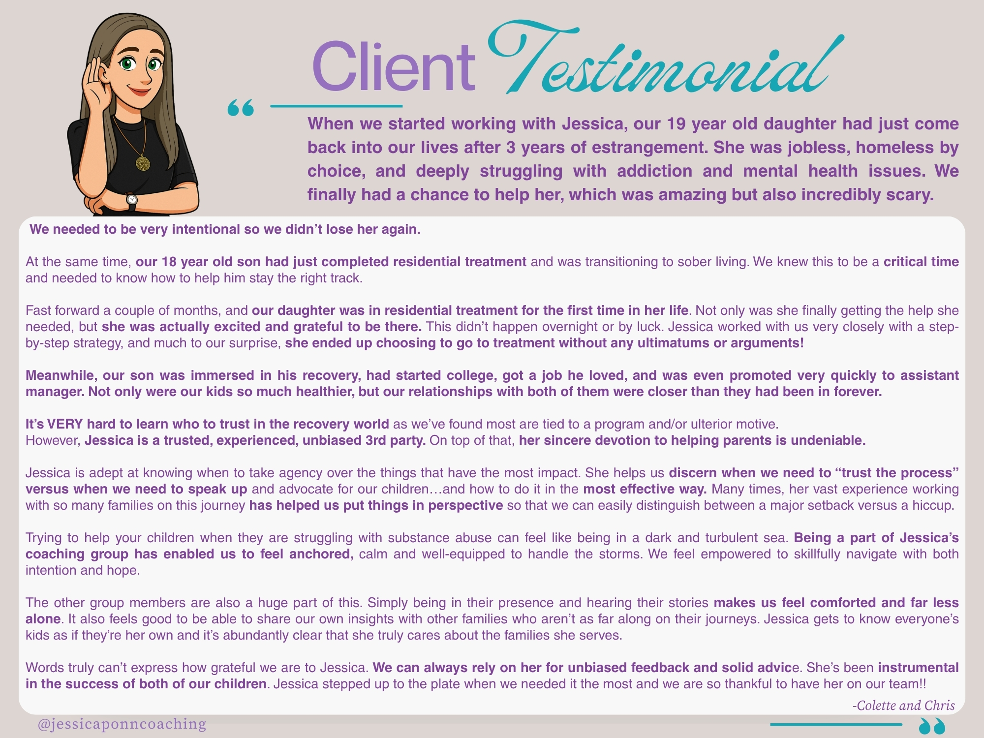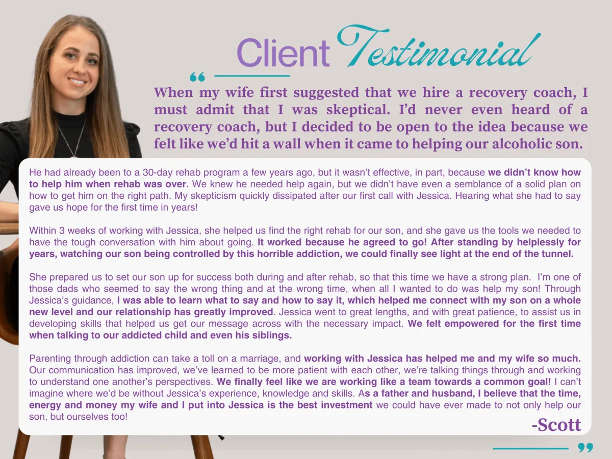 DIRECTION toward the type of support you need right now in order to effectively guide your son or daughter to long-term recovery. Whether we end up working together or not, you will leave with more clarity about the best next steps for you and your family.